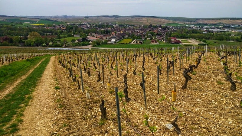We lopen eerst naar Chablis, zo’n 19 km. Vanuit de wijngaarden van de Grand Cru’s komen we Chablis binnen, prachtig! We verwennen onszelf met onze eerste croque madame (en voor Leo een glas Chablis uiteraard) op een gezellig terras. Bij de toeristeninformatie halen we nog een mooie stempel op voor in ons pelgrimsboekje. Om 14:30 uur verlaten we het sjieke stadje vol wijnboeren en trekken we verder het platteland in. We besluiten iets van de route af te wijken en pakken de meest directe weg, over het asfalt.