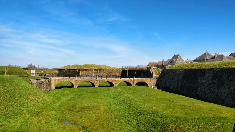 Op onze rustdag komen we pas om 09:00 u aan het ontbijt. Ook nu zijn we de enigen. Een goed ontbijt, inclusief sinaasappel ;). Na het ontbijt lokt de zon ons naar buiten, maar de wind laat het nog steeds koud aanvoelen. Dus donsjasjes aan en aan de hand van een serie geocaches maken we een wandeling over de vestingwerken van het stadje Rocroy.