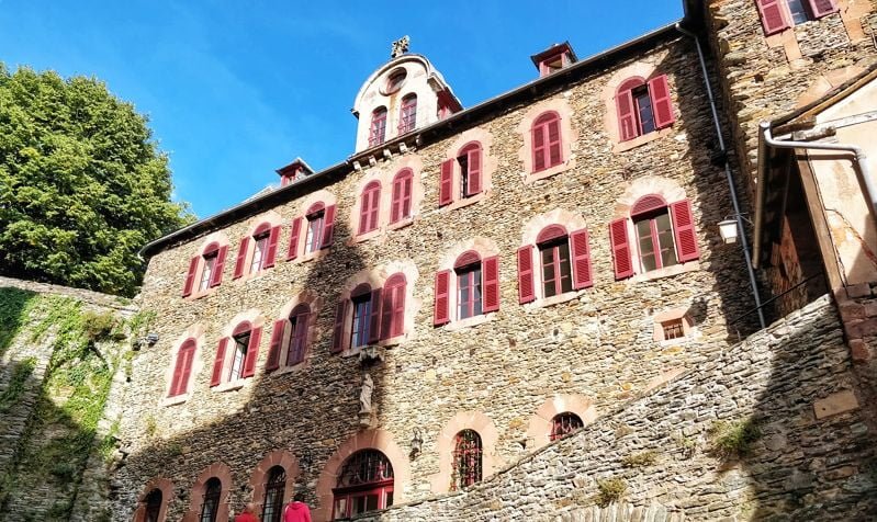Het lukt ons om een nieuwe overnachtingsadres te regelen. We zetten er onze rugzakken neer en gaan het prachtige plaatsje in. We zoeken en vinden een paar geocaches en drinken koffie/thee bij een Nieuw-Zeelandse die een hotelletje runt onderaan het dorp. Dit doet me mijn teleurstelling bijna vergeten. We lopen weer terug naar boven, naar “het centrum” en we komen daar de oudere Fransman tegen. Hij zegt ons dat enkele hospitaliers van de abdij ons aan het zoeken zijn. Hij heeft bij hen ons verhaal nogmaals gedaan en als een “geschenk van de camino” bleken er nog 2 bedden vrij gemaakt te kunnen worden voor ons. Uit een andere straat komt een hospitalier met armen wijd op ons afgelopen, zo blij is ze dat ze ons gevonden heeft na overal gezocht en gevraagd te hebben. Dat is toch wel heel lief dat ze zoveel moeite voor ons gedaan hebben.