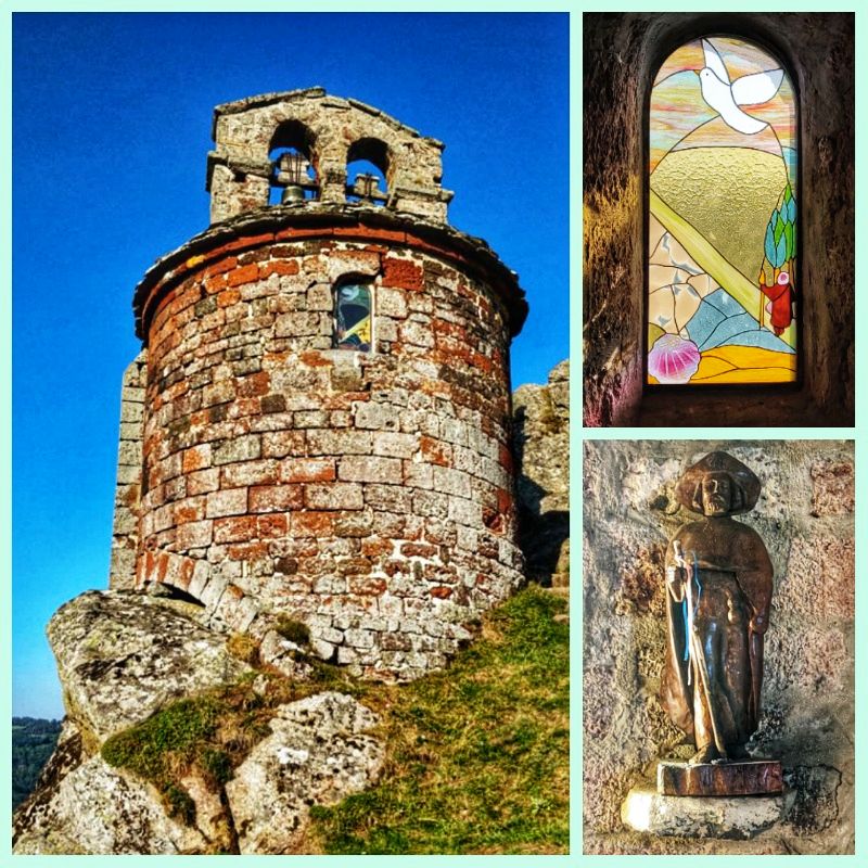 Vandaag wordt het weer warm, zo rond de 30 graden. Er staat veel klimmen op het programma. We beginnen met een fikse afdaling, nadat we eerst in de kapel in Rochegude zijn geweest. Een kapelletje met een prachtig glas-in-loodraam en een beeld van Sint Jacob.