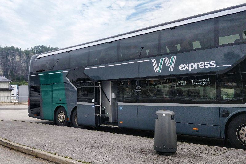 Op de 24e verjaardag van dochterlief beginnen wij de dag met onze terugkeer naar Nederland. Om 6 uur op, om 7 uur het hostel verlaten en om 8 uur in de bus naar Kristiansand. Nog één keer een blik op de indrukwekkende opera van Oslo, de talloze boten in het havengebied en de ruwe rotspartijen van Noorwegen. De bus rijdt vlot en is er onderweg zelfs nog tijd voor een korte pauzestop van 12 minuten. Ah, dat is voor mij precies genoeg tijd om uit te vogelen of er op deze parkeerplaats een geocache ligt (ja, dus) én op te halen ;). En mooi nog 4 travelbugs mee kunnen pakken die mee naar Nederland gaan.