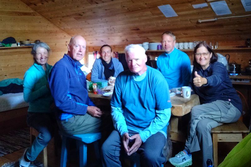 Net voor vieren en net voordat de regen begint te vallen openen we de deur van de hut in dit verder onherbergzame gebied. Daar zitten ze dan, de 5 vroege vogels. Ieder op hun eigen matras, die op een rijtje naast elkaar liggen. Er zijn er nog 3 over, dus wij passen er nog mooi bij. Meteen vanaf het 1e moment voelt onze entree als “thuis komen”. We kletsen met elkaar, we delen eten met elkaar, we doen de afwas met elkaar en als ik zo om heen kijk zie ik eigenlijk iedereen met een blij gezicht. Dit voelt zo sociaal veilig, zo vertrouwd en het gevoel van saamhorigheid op deze ruige hoogvlakte is zo groot! De organisatie van dit tijdelijke huishouden loopt als een trein, zonder dat we daar eerst afspraken over hoeven te maken. Ik vind het zo fascinerend dat dit kan met “wildvreemden”. Fijn om te constateren dat de mens van nature zo’n sociaal dier is!