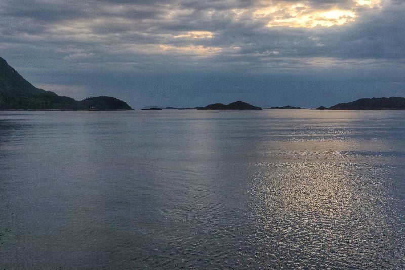 Er wordt gelost en geladen en de passagiers kunnen in die tijd even van boord. De boot vaart zo dicht langs de kust dat we altijd zicht hebben op land. Het is een onafgebroken schouwspel van grillige bergen, van mooie vuurtorens en van kleine eilandjes. Het uitzicht verveelt geen moment.
