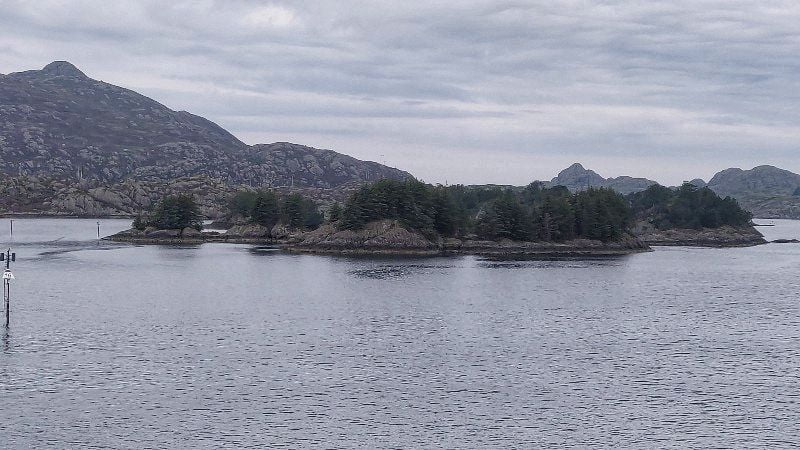 We doen ons tegoed aan het ontbijt en datzelfde geldt voor de lunch. In de tussentijd passeren we o.a. Steinsundet, een fjordengebied met maar liefst 1.700 eilandjes! Heel Noorwegen heeft 239.000 eilanden. We krijgen er wat uitleg bij, wat daarna wordt gevolgd door klassieke muziek van Edvard Grieg, de bekende componist uit Bergen. Leo en ik kruipen onderhand de luidspreker in om geen enkele klank te hoeven missen.