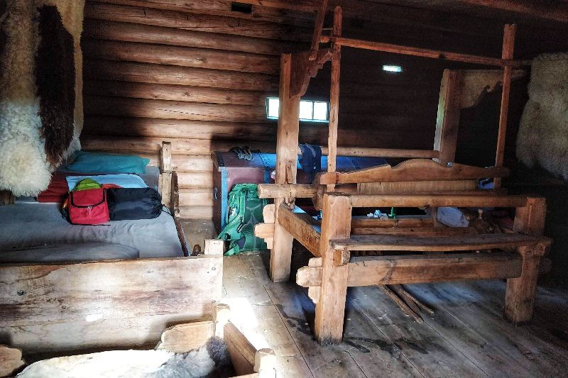 Na de rondleiding (het is inmiddels 22.30 u) gaan de hotelgasten naar hun kamer en klimmen wij naar de pelgrimszolder. Zo’n zolder zit vol gaten en kieren, dat betekent dus slapen bij een temperatuur van zo’n 6 graden. Met slaapzak én een extra Noorse deken vielen we als een blok, onder de hangende schapenvachten, in slaap. Zalig!