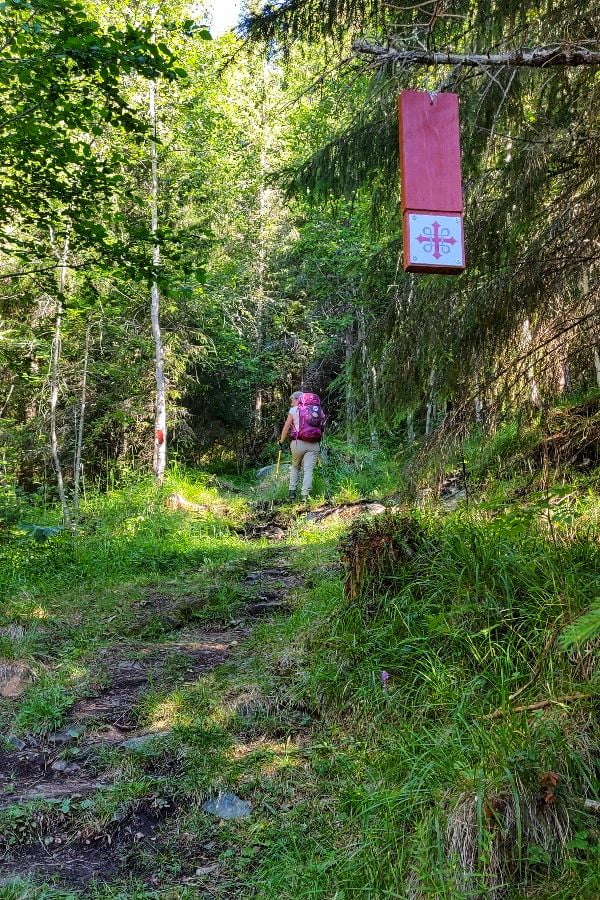 Twee pittige bergen hebben we vandaag te beklimmen en af te dalen, in totaal 20 km. Een pittig tochtje dus. Maar ook nu blijkt maar eens te meer: een mens lijdt het meest onder het lijden dat hij vreest…. want het ging bij ons beiden als een tierelier🙂 . Het doorprikken van de blaren op m’n rechterhiel was zeer succesvol, want ook die hiel voelt nu vrij van pijn. Wat een genot!