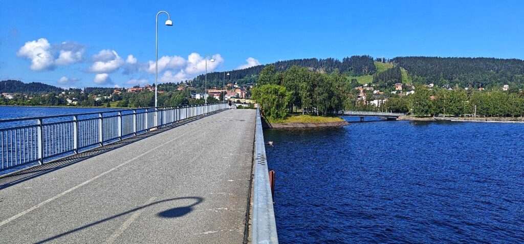 Met onder andere een zelfgebakken wafel als ontbijt vertrekken we uit het hostel, waar we zo heerlijk van onze rustdag hebben genoten. De zon is er weer bij deze dag en met een aangenaam verkoelend windje is het heerlijk lopen. Het lopen gaat ons beiden goed af. Zolang de Compeed maar z’n werk doet, loop ik inmiddels ook als een kievit. Het fijne aan wat langer onderweg zijn, is dat je lichaam gewend raakt aan de inspanning. Ook de rugzak voelt (bijna) als natuurlijk aan. Als we de grote voetgangersbrug over het water overgestoken zijn, zien we de grote stad Östersund in het zonlicht langzaam ontwaken op deze vroege zondagmorgen.