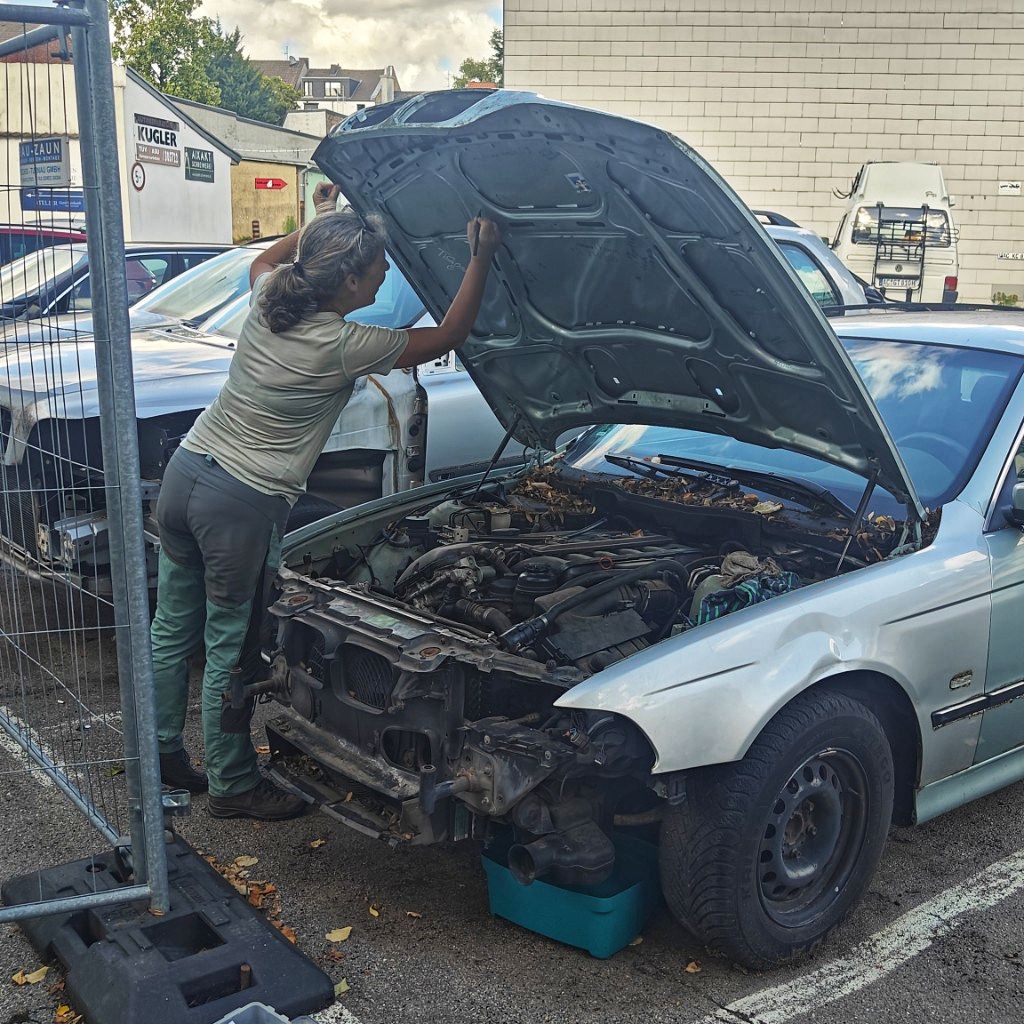 Op mijn verlanglijstje voor Aken staat iets heel anders, een heel bijzondere geocache. Gelukkig ligt deze al in de richting van ons hotel. Nou… de cache met de titel “Time to say goodbye” stelde me niet teleur! De behuizing bleek een sloopauto te zijn en het logboek was de onderkant van de motorkap – nooit eerder gezien!